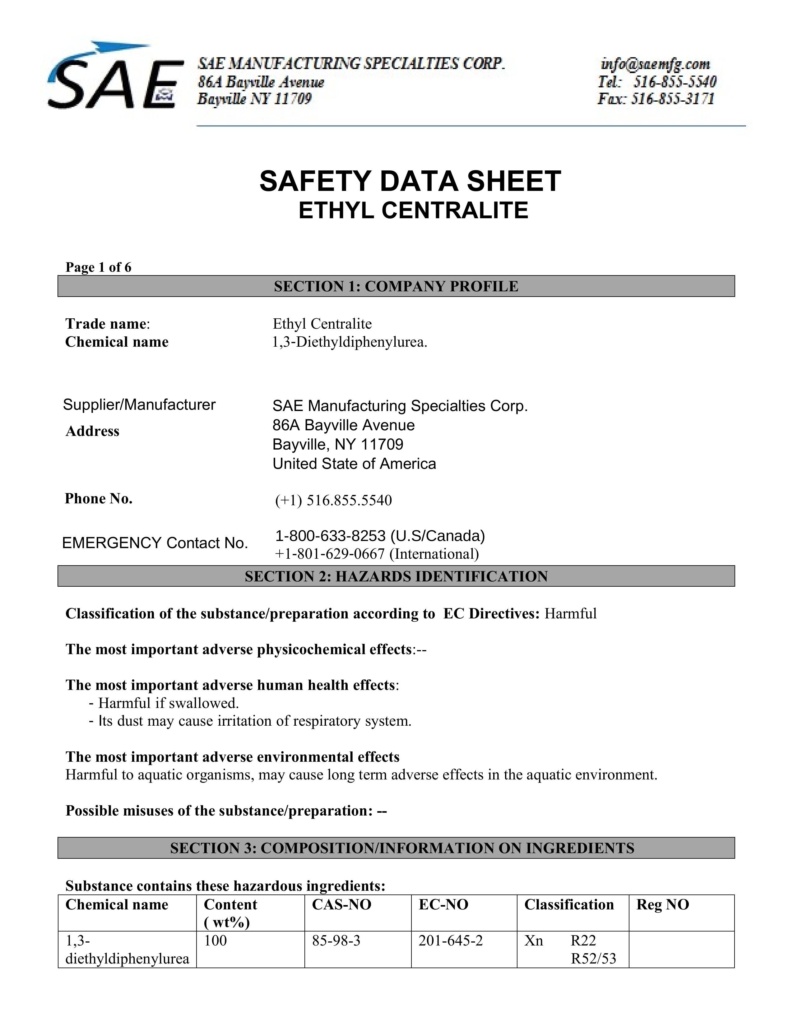 SAFETY DATA SHEET – ETHYL CENTRALITE