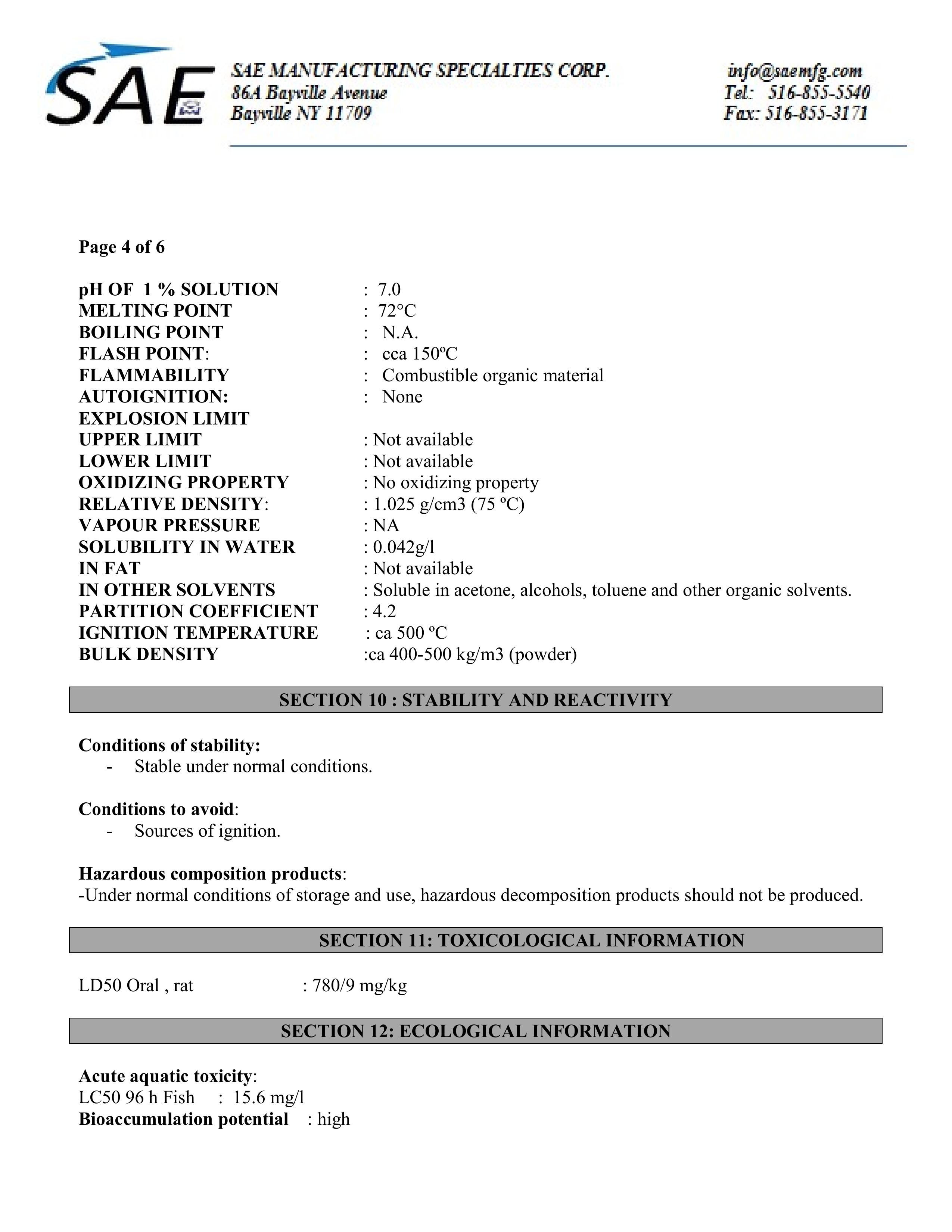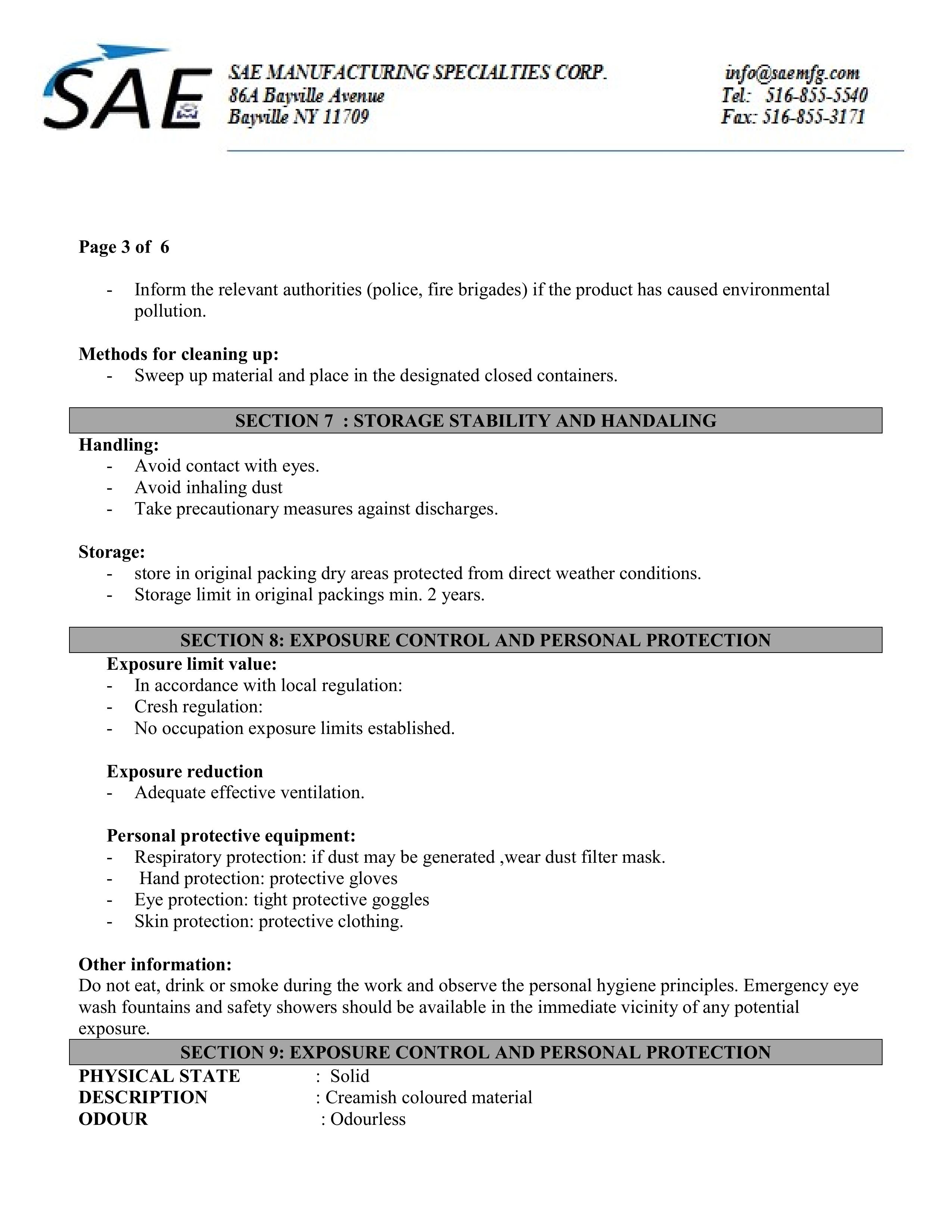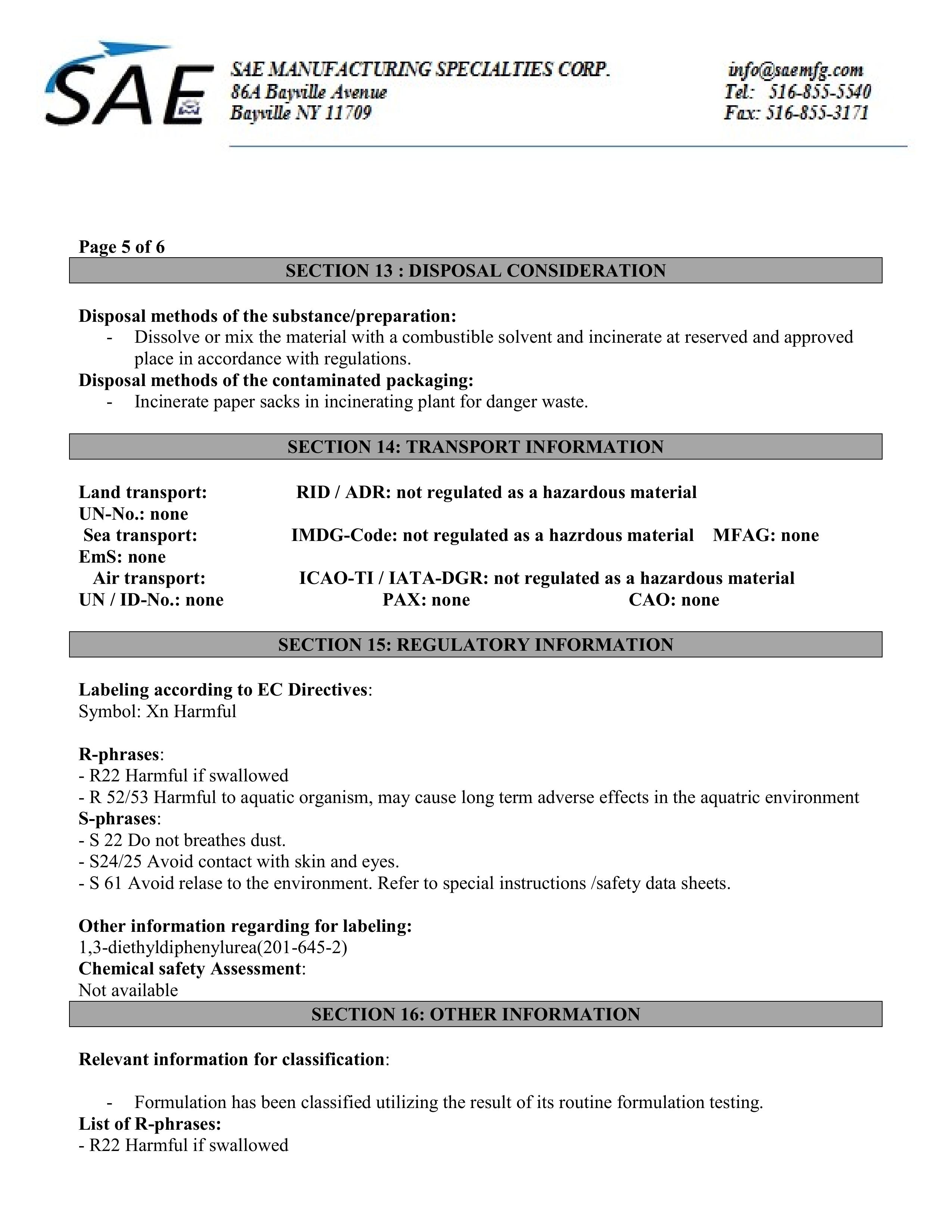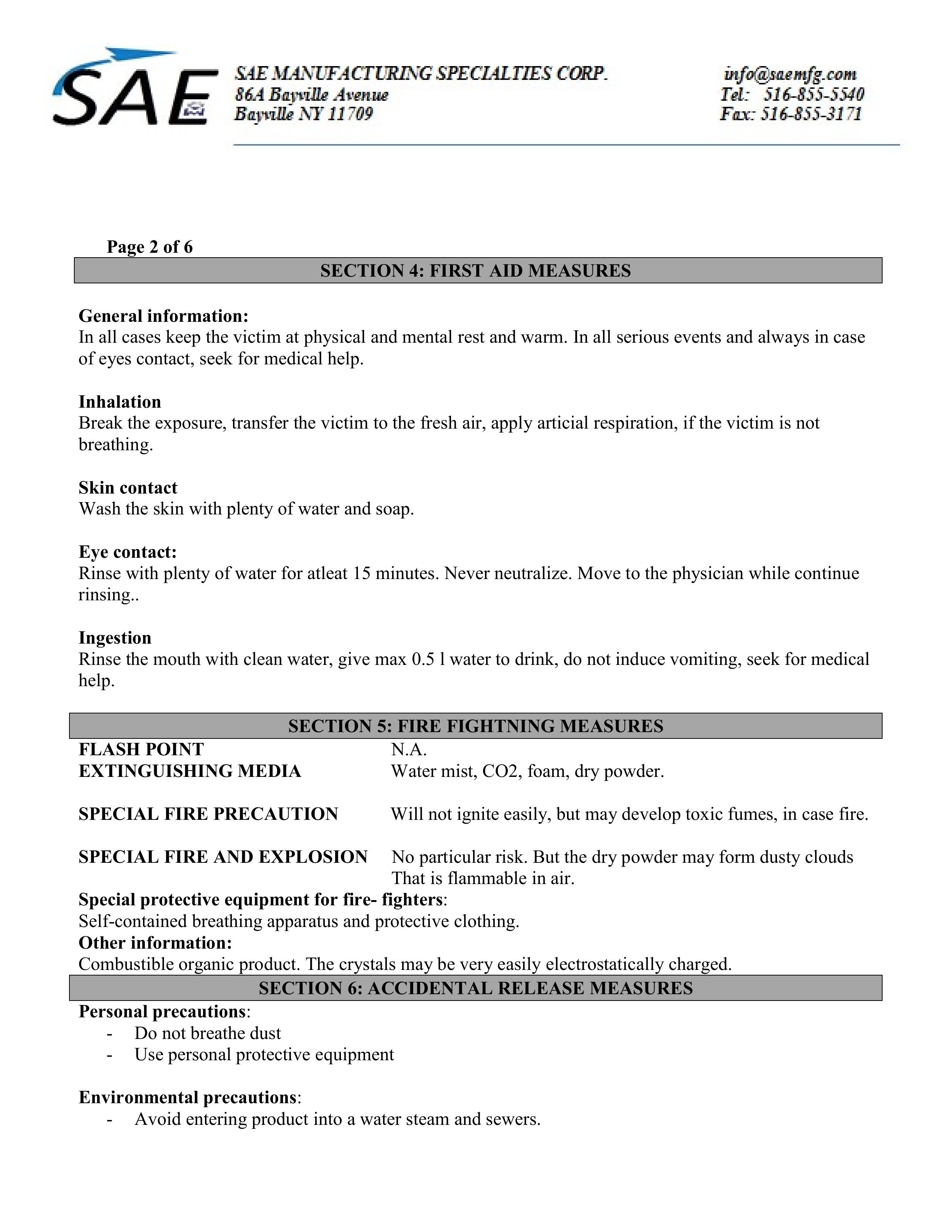 - Packaging: Incinerate paper sacks as hazardous waste.