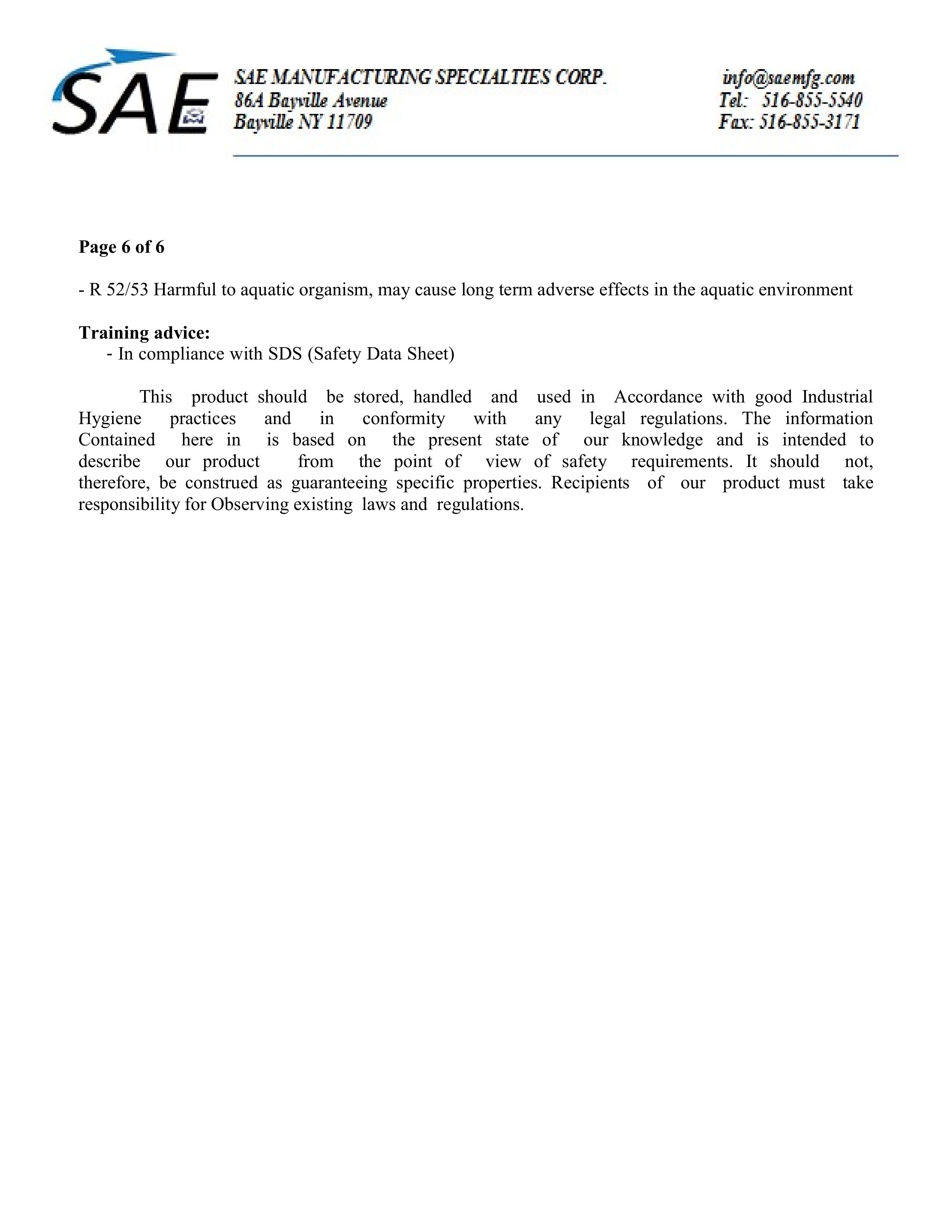 - Training advice: Follow SDS; store & handle with good industrial hygiene practices.